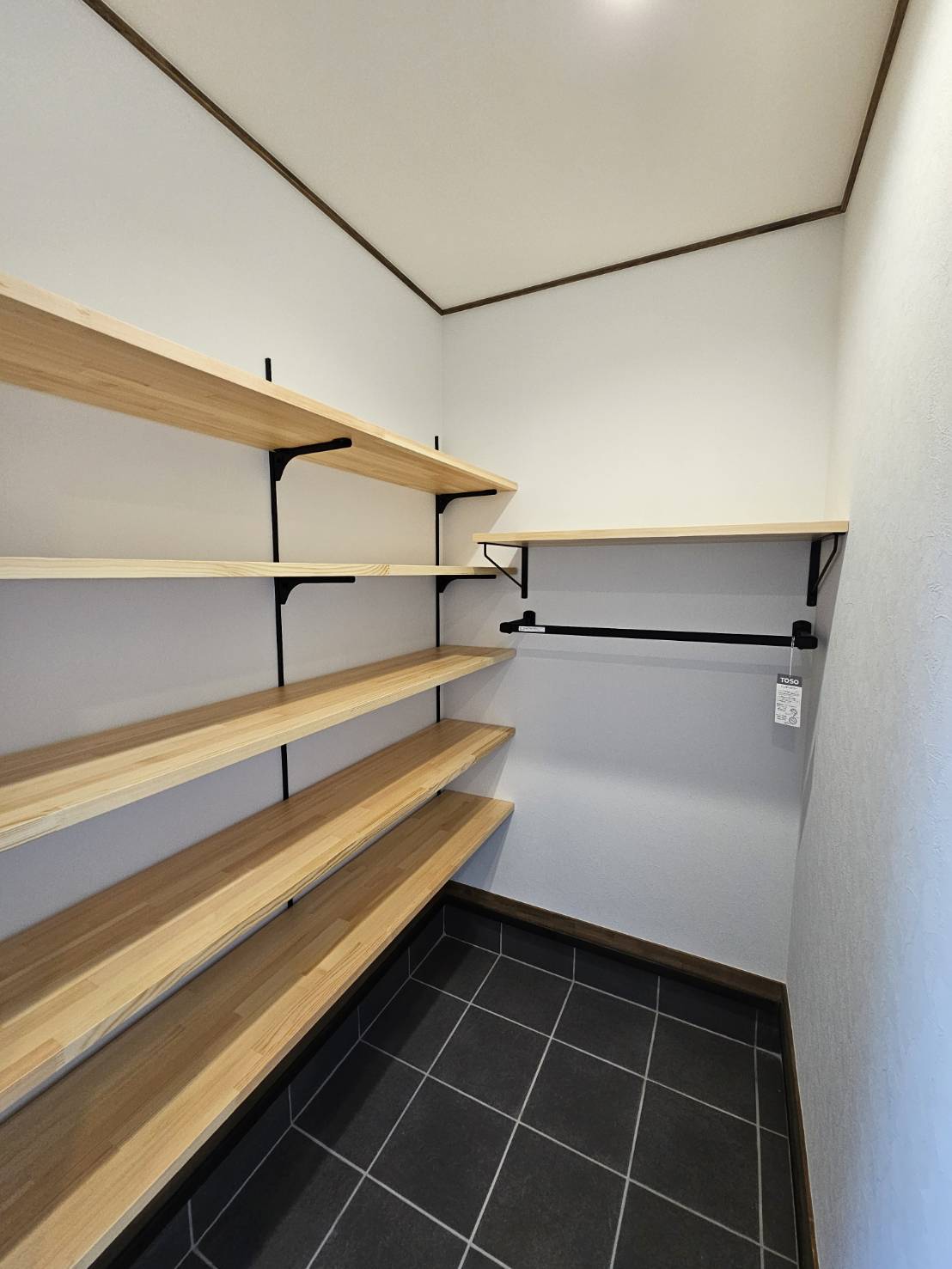 - 玄関から続くシューズクローゼット。可動式棚板が便利です。